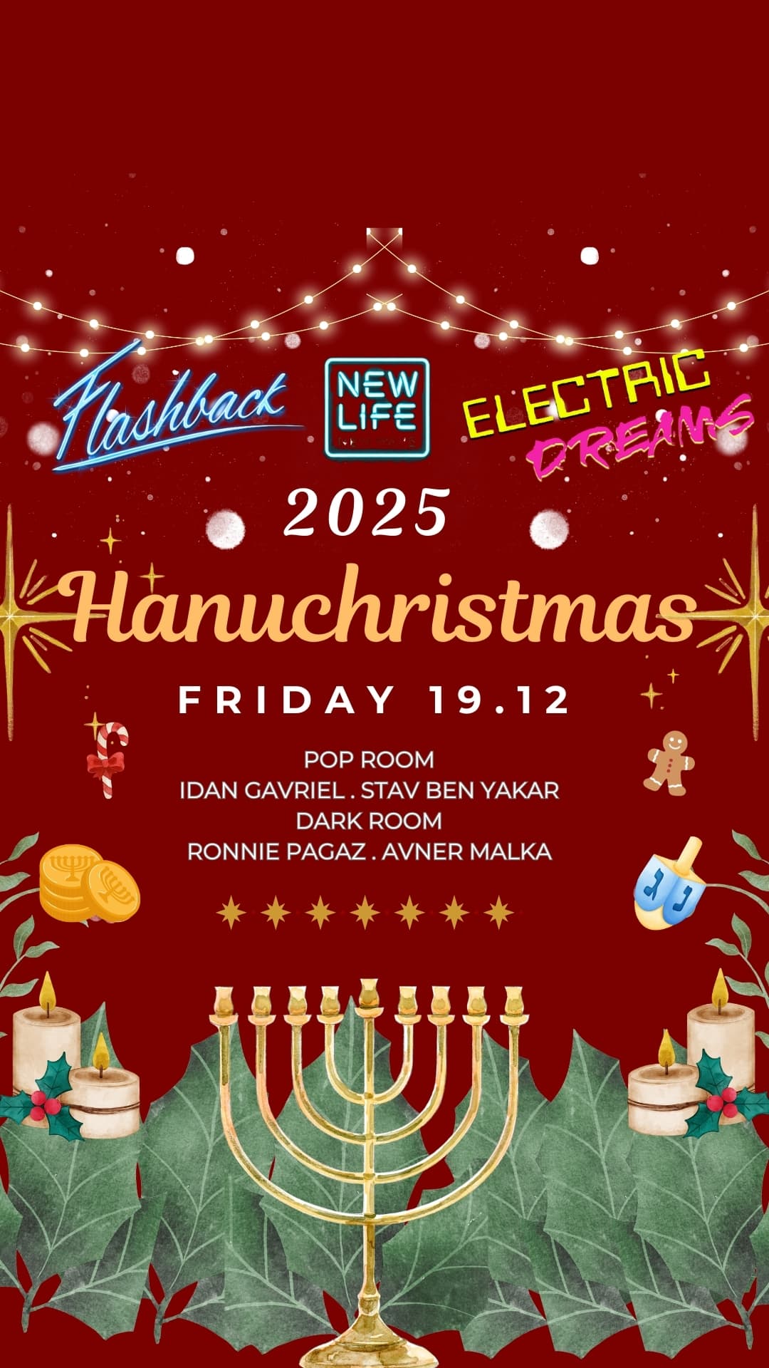 בשנה שעברה איחדנו כוחות והצבעתם ברגליים אז החלטנו שזה קורה גם השנה: אלקטריק דרימז, ניו לייף ופלאשבק מתאחדים ומתרגשים להביא לכם את מסיבת האייטיז חנוכריסמס של 2025.