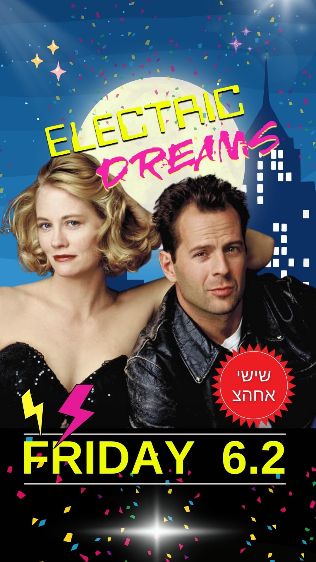 בשישי ה6.2 אנחנו כל כך שמחים לחזור לאייטיז באווירה הקסומה של מסיבת אלקטריק דרימז, והפעם במתכונת אחר הצהריים האהובה ✨🎉