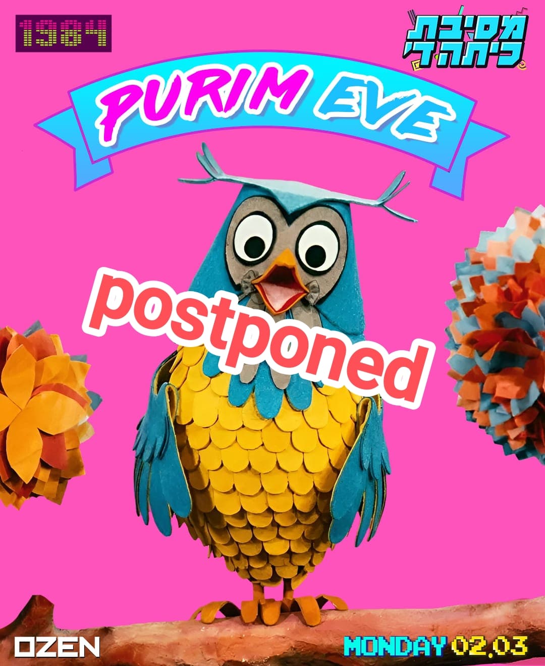 ההפקה השמחה בשנה של הליין 1984 תתקיים ביום שני 02/03/26 בערב פורים - מסיבת כיתה ד' צבעונית, חגיגית, נוצצת ומולטיסקסואלית בשתי רחבות - רחבת קיטש ורחבת דארק